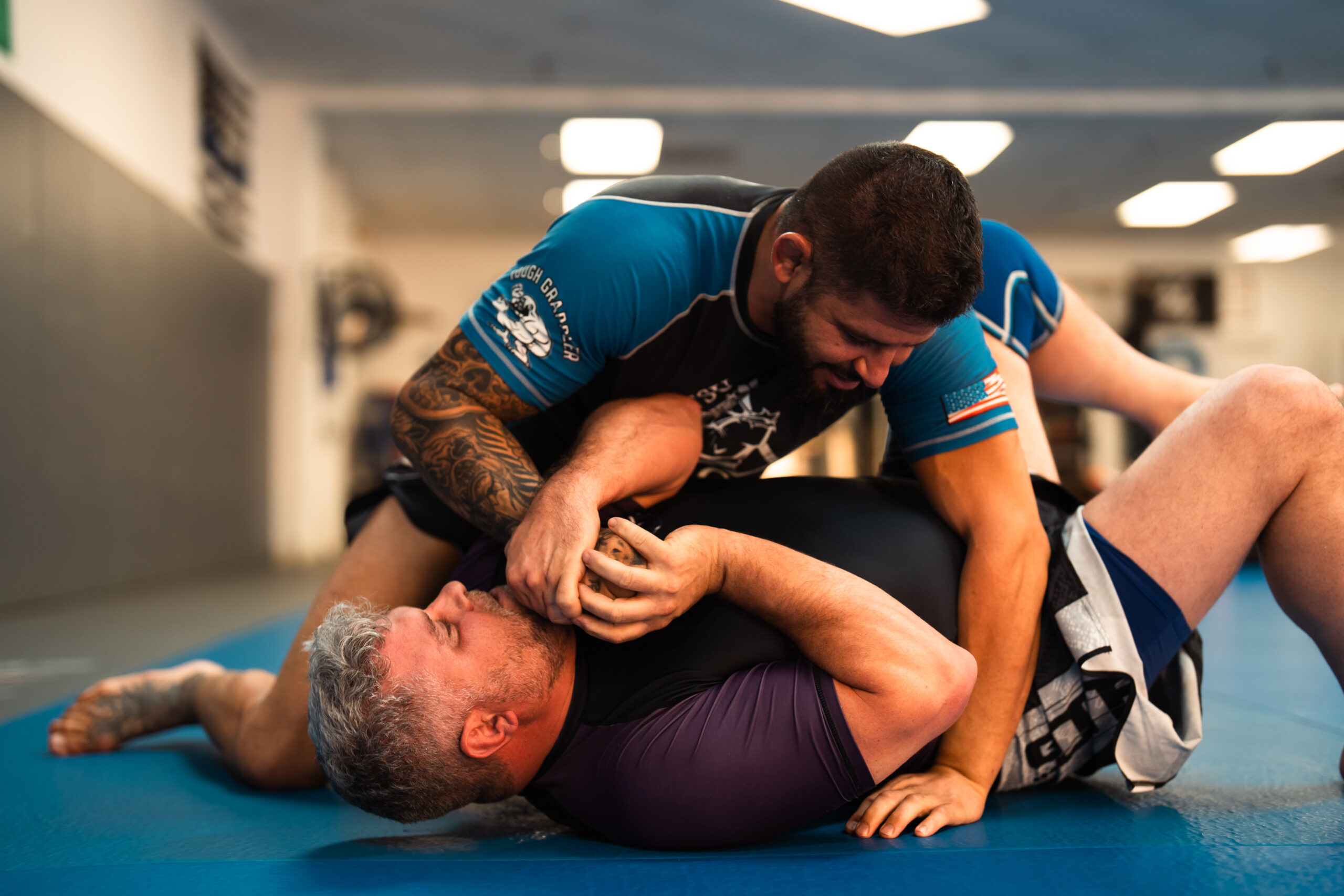 Grappling is central to BJJ, focusing on subduing opponents through physical dominance without striking. Techniques differ in Gi and No-Gi Jiu Jitsu and vary between sport and self-defense styles, often involving ground fighting and various chokes.